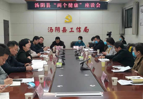 调研组一行首先来到我县汤阴民营经济“两个健康”促进中心,对促进中心平台设施进行了逐一参观了解,针对“两个健康”创建工作,召开了“两个健康”专题座谈会,市委统战部四级调研员陈贵森、汤阴县委统战部部长王威、市委统战部、市工信局、县统战部、纪委监委、工信局、宣传部、工商联、发改委、企业服务中心及媒体参加。与会人员共同观看了我县“两个健康”创建宣传片,由汤阴县各单位负责同志结合工作职能,向调研组汇报了我县创建工作开展以来的主要措施和做法,亮点工作和主要成效。